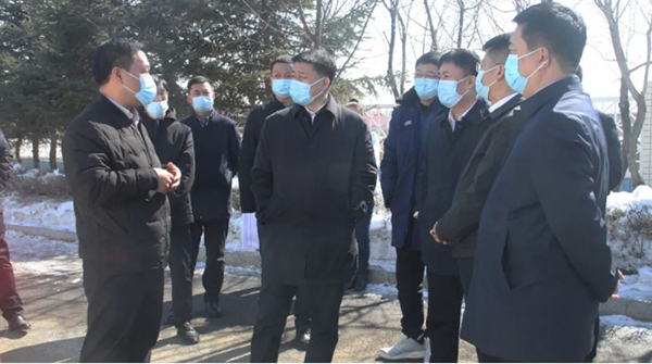 3月18日,鸡西市长鲁长友深入双色球预测 (虎林)调研公司三期项目建设情况,虎林市委书记高运䘵、市长温永豹陪同调研,公司领导刘景峰、董潮、兰培宝参加接待。