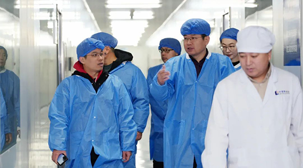 在珍宝岛冻干制剂生产车间,罗培原一行参观了以注射用血塞通为代表的智能制造生产全流程,重点了解了核心生产设备、生产工艺及生产质量控制等,对企业智能制造水平给予好评。